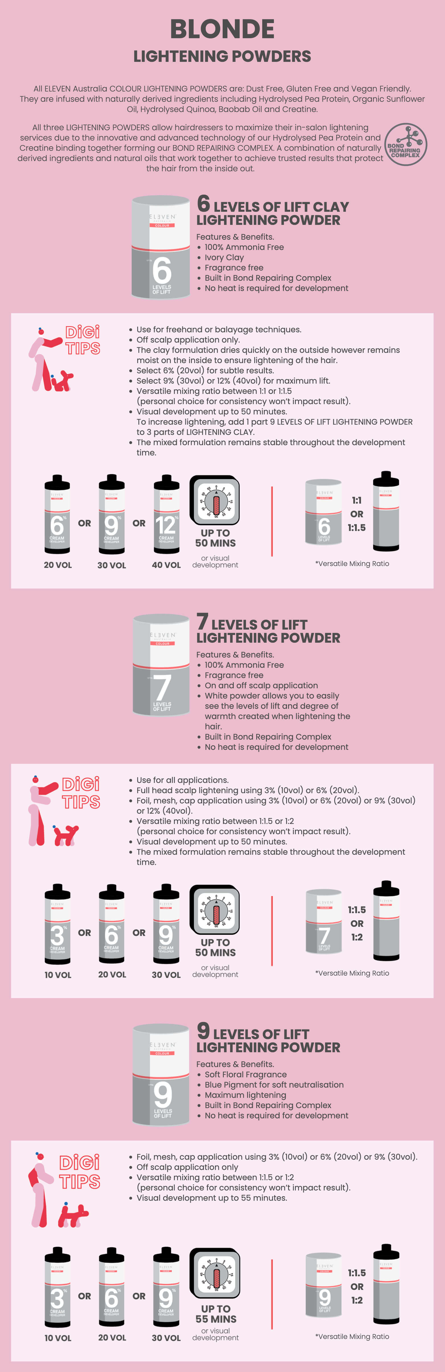 Using scales add equal parts (1:1) of the selected ELEVEN Australia COLOUR shade and the ELEVEN Australia COLOUR Activator 2% (7vol) or 4% (13vol).